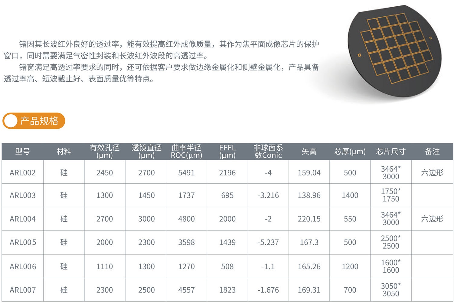 晶圓級紅外測溫\成像用硅透鏡